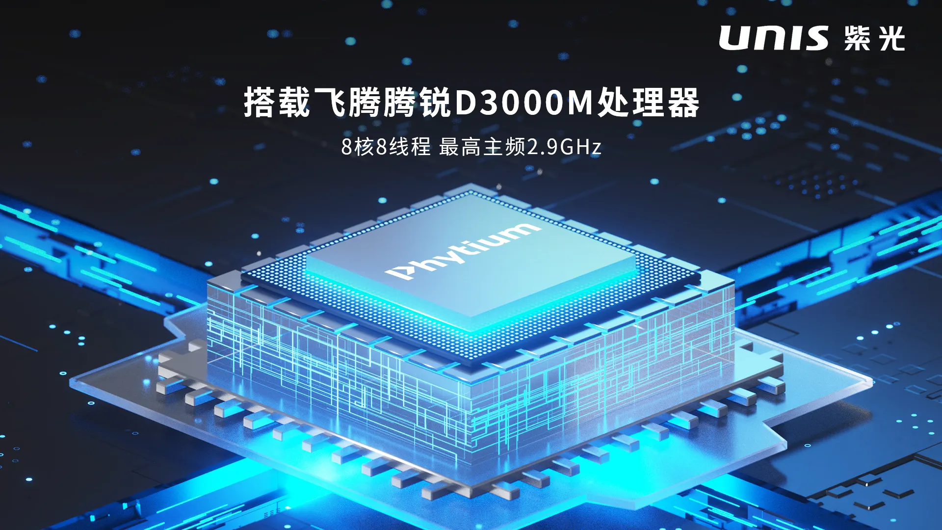 UNIS L3813 G3采用全新飞腾腾锐D3000M八核处理器,最高主频2.9GHz,单核性能较上代提升3倍以上,CPU集成高性能GPU和3TOPS算力的NPU,可流畅运行CAD等专业软件和多种轻量级AI任务;最高标配32GB双通道LPDDR5/5x高速内存,数据传输率高达6400MT/s;最大标配2TB M.2 NVMe 固态硬盘,大文件、大应用瞬间响应,使用更加流畅。